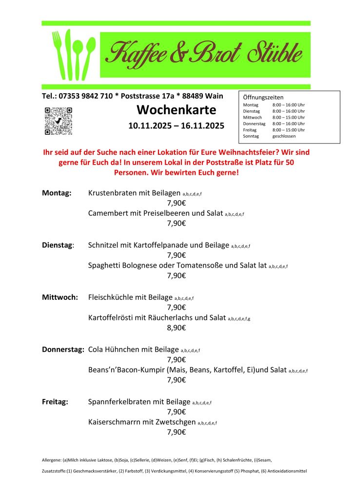 wir treffen Euch gerne zur Abholung oder zum Verzehren vor Ort unserer Speisen im Kaffee und Brot Stüble in der Poststrasse 17.